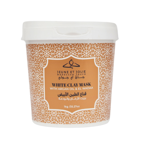 قناع الطين اﻷبيض بزيت اﻷرجان والودعة